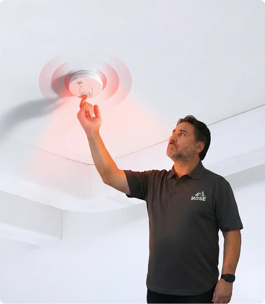 During a home inspection, Mose inspectors perform a visual, non-invasive assessment of smoke detectors.